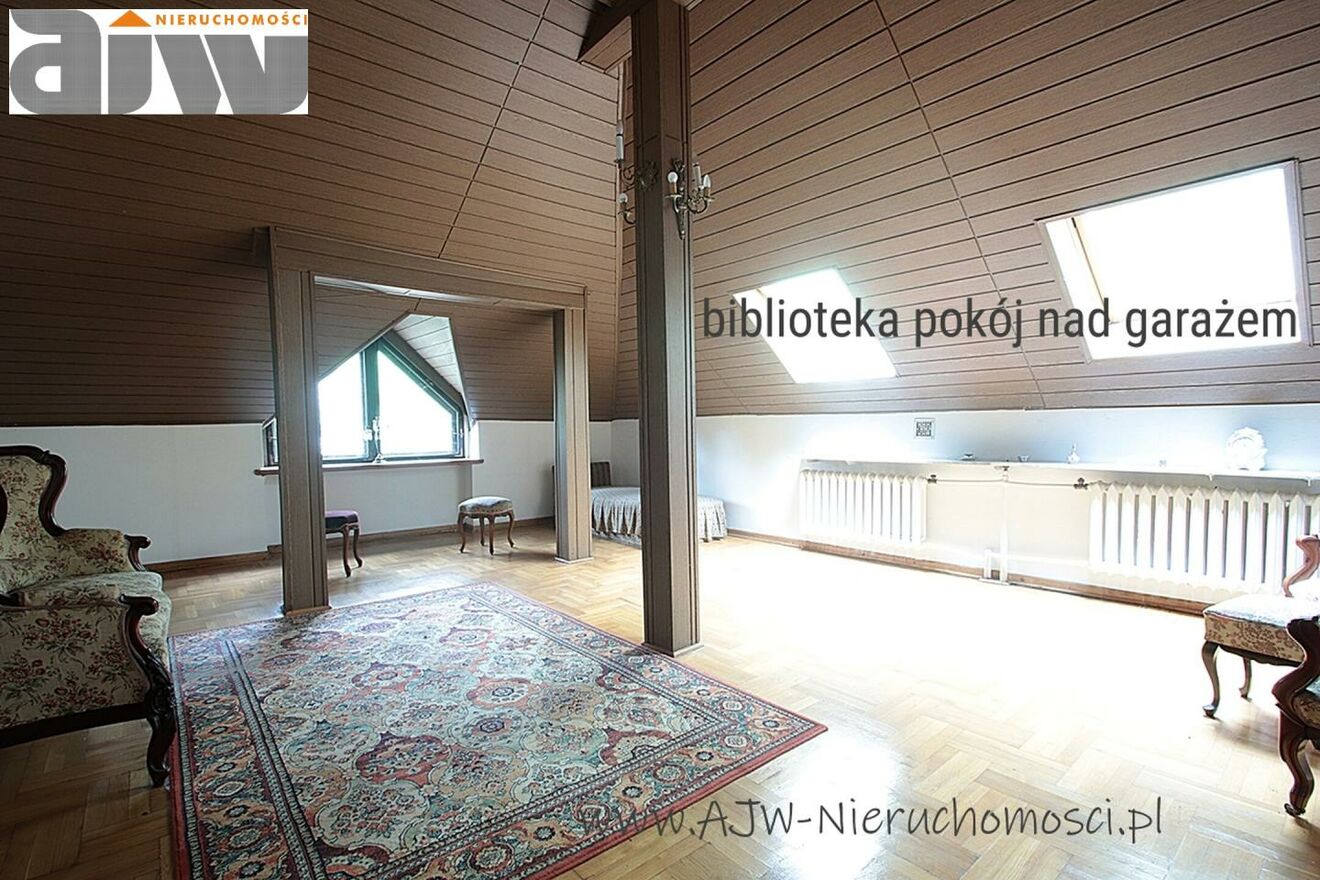 duży pokój biblioteczny usytuowany nad garażem o ok 40m2.